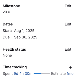 - Time tracking for epics introduced in GitLab 17.5. The new look for epics must be enabled.