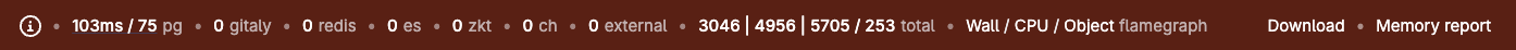 As we did with stackprof, we could also use curl with the performance_bar parameter.